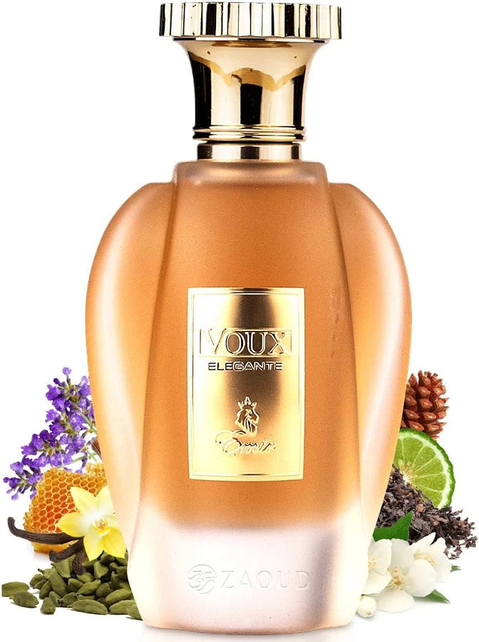 Voux Élégante is a bold, refined fragrance with a powerful aromatic character. It opens with fresh spicy notes and smooth lavender, leading into a rich heart of warm spices and woods. The base is deep and sensual, blending amber, patchouli, and woody accords for a long-lasting, confident finish. Elegant, masculine, and commanding—perfect for evenings and special occasions.